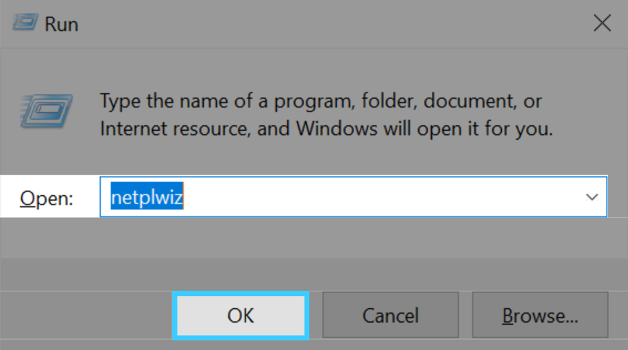 Step 1: Press Win+R, enter “netplwiz“, which will open the “User Accounts” window. Netplwiz is a Windows utility tool for managing user accounts.